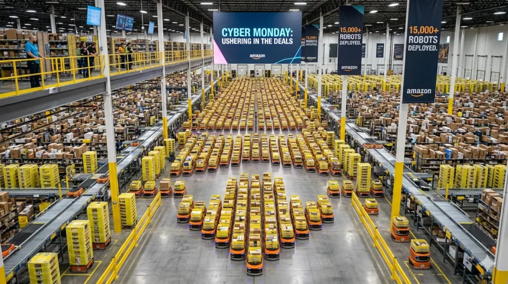 15,000 robots usher in Amazon’s Cyber Monday. [Source: Click here]
